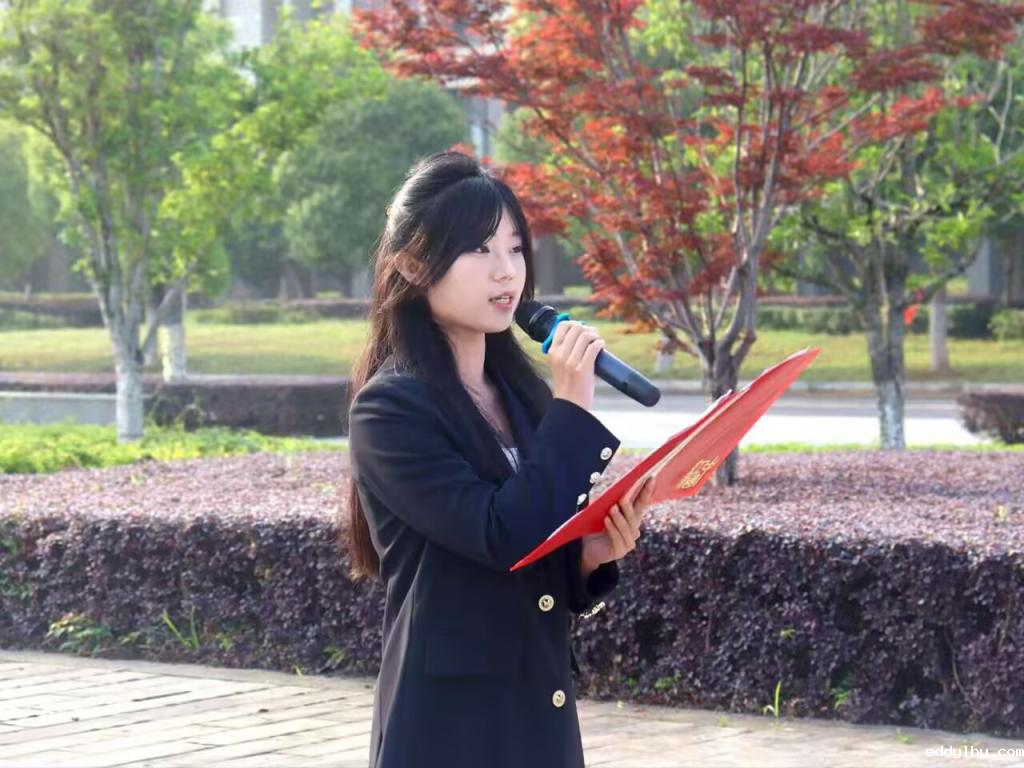 新闻学222班的团员代表刘薇作国旗下的演讲。她分享了自己从迷茫到成长的实践经历,鼓励同学们主动走出校园,在实践中探索真知,提升技能,明确职业方向,以"初生牛犊不怕虎"的勇气迎接挑战,在专业与实践中寻找交汇点。
