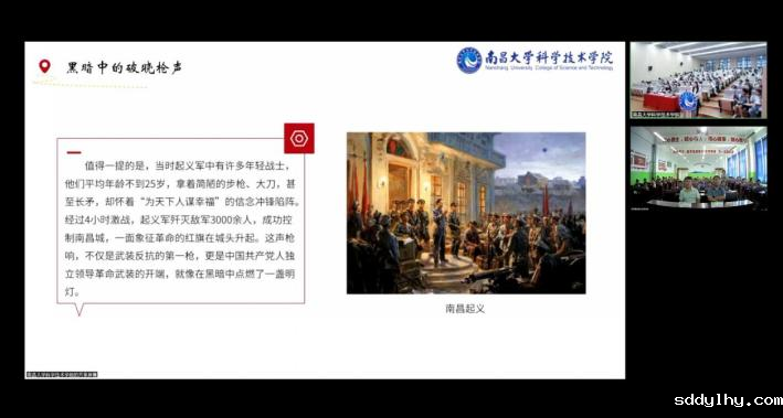 随后,双方正式签署结对共建协议,学生代表依次发言。理工学科部辅导员邱丽丹以《人民军队的摇篮——南昌》为主题,通过“全景式”生动回溯南昌八一起义的革命历史,引导线上线下不同学段的学生“沉浸式”感受红色革命韵味,在思想激荡中触发跨域交联互构。在全体师生齐声合唱《爱我中华》的激昂歌声中,启动仪式圆满收官。
