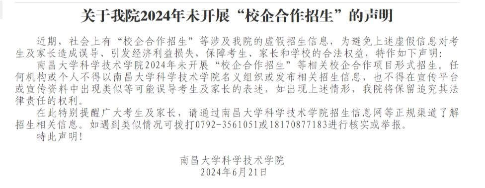 关于我院2024年未开展“校企合作招生”的声...关于我院2024年未开展“校企合作招生”...